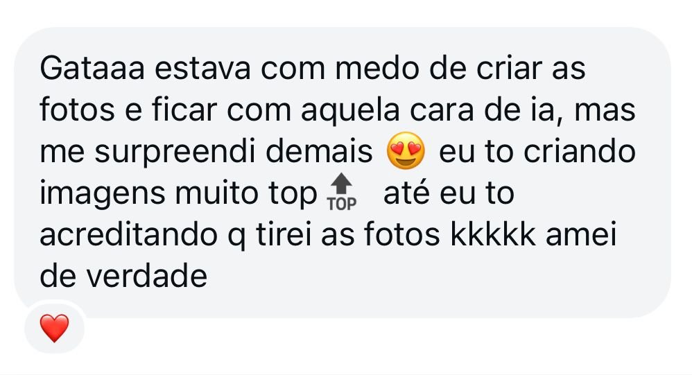 Não existe limite da nossa parte. Você tem acesso liberado aos prompts por 1 ano e pode gerar milhares de imagens, testar looks diferentes e criar cenários novos todos os dias. O seu “estúdio” funciona 24 horas.