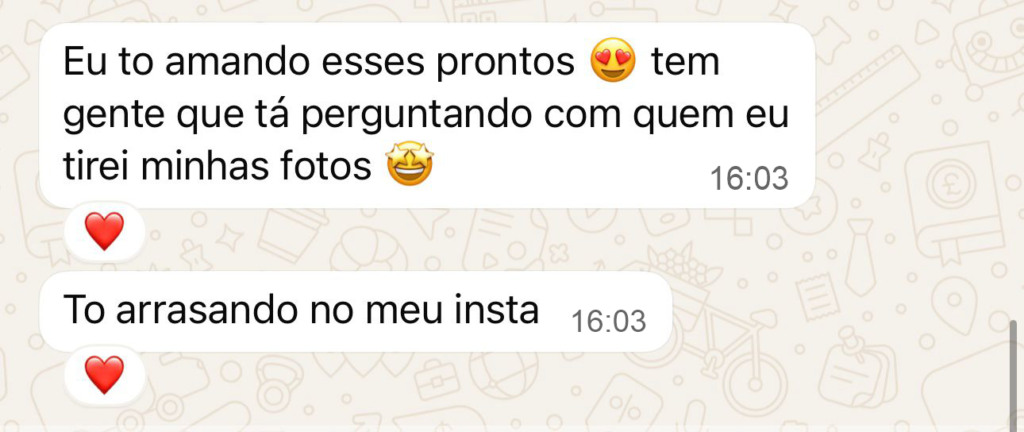 Eu acredito que toda mulher merece se ver linda, profissional e poderosa, sem precisar gastar uma fortuna com estúdios ou depender de agendar horários com fotógrafos.